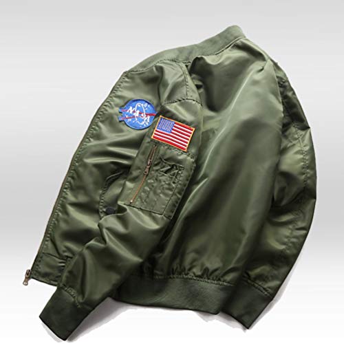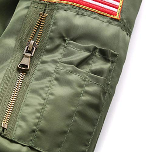 WanYangg Uomo Classico Bomber Giubbotto, Giacca da Pilota A Manica Lunga Vintage Manica con Ricamo Autunno Militare Bomber Aviatore Sportiva Leggera Flight Giacca Giubbotti Giacchetto Verde 2XL