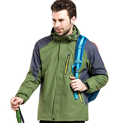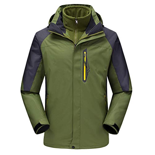 WanYangg Giacca 3 in 1 Uomo Giacche Cappotto da Antivento Impermeabile Termiche Traspirante Softshell Windbreaker da Snowboard per Sci Trekking Montagna Escursionismo Outdoor Verde Militare 3XL