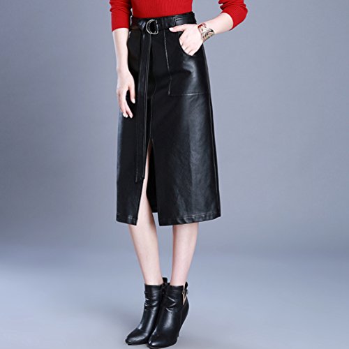 WanYangg Inverno Gonna in Pelle Donna Lunghezza Ginocchia Casuale Vita Alta Ecopelle Classica Mini Aderente Asimmetrica Tinta Unita A-Line Midi Gonna Lunga Club 2# Nero XL