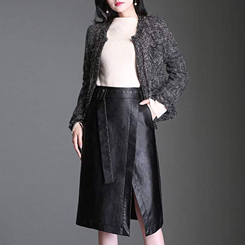 WanYangg Inverno Gonna in Pelle Donna Lunghezza Ginocchia Casuale Vita Alta Ecopelle Classica Mini Aderente Asimmetrica Tinta Unita A-Line Midi Gonna Lunga Club 9# Nero XL