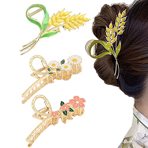 WANYIG 4 Pezzi Mollette per Capelli Grandi per Donne in metallo Fermagli per Capelli Mollette Mollettoni Eleganti a Forma di Fiore per Signore Ragazze per Capelli Spessi, Capelli Sottili (Fiore #4)