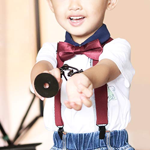 WANYING Set di Bretelle e Papillon per Unisex Bimbi Bambini da 1 a 5, Forma di Y Larghe 2,5 cm Bretelle con 3 Nere Clip Elastico e Regolabile - Bordeaux