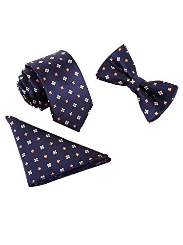 WANYING Uomo Gentleman Papillon Classico 6*12 cm & Cravatta Stretta 6 cm & Fazzoletto da Taschino 3 in 1 Set