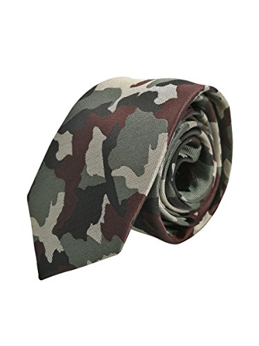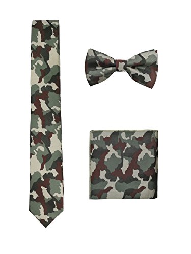 WANYING Uomo Gentleman Papillon Cravatta Fazzoletto 3 in 1 Set - Papillon Classico 6*12 cm & Cravatta Stretta 6 cm & Fazzoletto da Taschino - Paisley Verde Camouflage