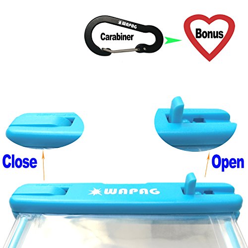 WAPAG Impermeabile Borsa Caso Marsupio per iPhone, 7, 6s, 6, 6Plus 5s, Samsung Galaxy s5, s6, s6 edge, s4, Nota 4, Cellulare Fino a 6 centimetri, Sporco / Neve / Polvere Prova, sta Nuotando, Kayak, IPX8 a 100Feet (Blue)