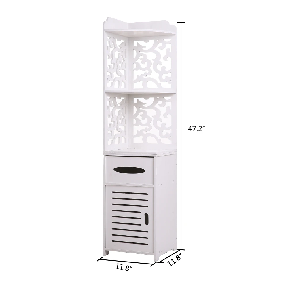 US Warehouse - (30x30x120cm) Pattern Carved Bathroom Corner Shelf Drop Shipping USA