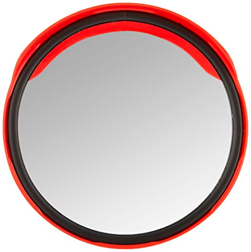Warensicherung.de Specchio per traffico convesso 30 cm panoramico interni ed esterni grandangolare per la sicurezza stradale garage con guarnizione in PVC, argento/rosso