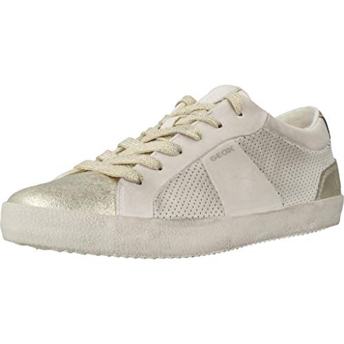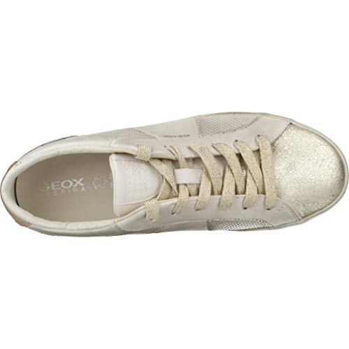 Geox D Warley a, Scarpe da Ginnastica Basse Donna, Bianco White Lt Gold C1327, 35 EU