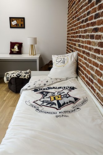 Warner Parure da letto Harry Potter con copripiumino e federa in cotone, 140 x 200 cm, colore: ecrù