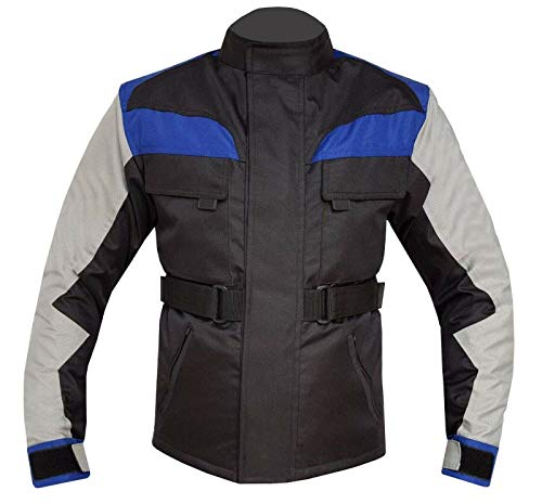 Warrior gears Giacca da motociclista per bambini, giacca da motociclista in tessuto Hi-Vis per ragazzi, giacca da motociclista per ragazzi corazzati CE, Blu e Nero, 9-10 Anni