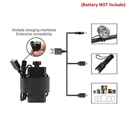 WASAGA 18650 Custodia per Batteria, Power Bank da Esterno Impermeabile da 5V USB 8.4V DC Perfetto per Il Ciclismo, la Pesca, Il Campeggio, l'arrampicata (Nero 8.4V 4 Pezzi Batteria)