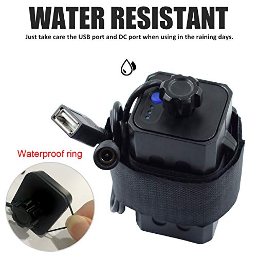 Suggerimento 4: questa custodia può essere collegata a torcia, lampada frontale, telefono cellulare e altri dispositivi con porta USB (5 V) o CC (8,4 V).