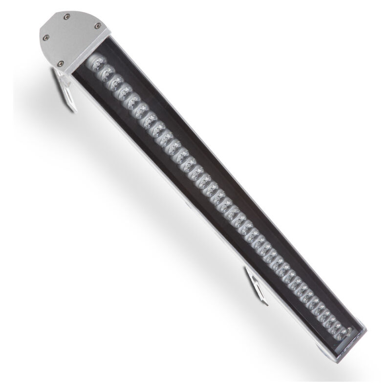 Il LED Wall Washer monta un'ottica appositamente studiata per l'illuminazione diffusa. Il suo driver è integrato all'interno del Linear Washer. Funziona direttamente a 100-240V, quindi si alimenta collegandolo direttamente alla rete elettrica. Ha un'elevata efficienza, consuma 36W tramite 36 LED ad alta potenza, con angolo di apertura di 60°, ottenendo un indice di resa cromatica di 80. il suo consumo rappresenta un valore di 36kWh/1000h, riducendo la quantità di energia fatturata e le emissioni di gas inquinanti in atmosfera. Questo proiettore offre un avvio istantaneo, ha un grado di protezione IP65 (valido per polvere e umidità all'esterno), oltre ad essere sufficientemente robusto per le richieste meccaniche richieste. Realizzati in alluminio con finitura grigia e vetro antideflagrante ad alta resistenza. I proiettori a LED sono ampiamente utilizzati per proiettare la luce su pareti, facciate, giardini, palchi, pareti, musei, mostre. Può essere installata come applique, a soffitto