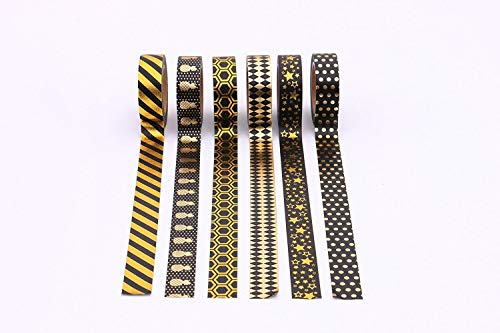 Washi tape Black & Gold (Pack of 6)