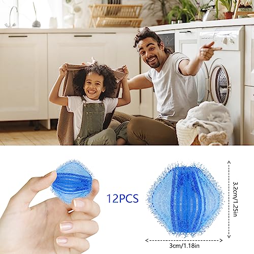 Pack of 12 Pet Hair Washing Machine Catcher,Cat Hair Remover Washing Machine,Pet Hair Catcher for Laundry,Reusable Lint Balls Removes Pet Hair Lint for Washing Machine (blue)