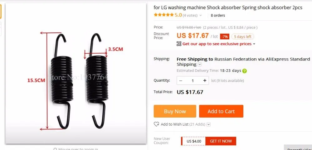 For LG washing machine Shock absorber Spring shock absorber 2pcs