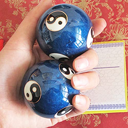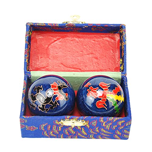 Washranp 2 Pz / Paio Baoding Palline da mano cinesi regalo con scatola Dragon Phoenix modello Finger Esercizio smalto colore Yin Yang Fitness palla mano sollievo stress esercizio mano blu 1