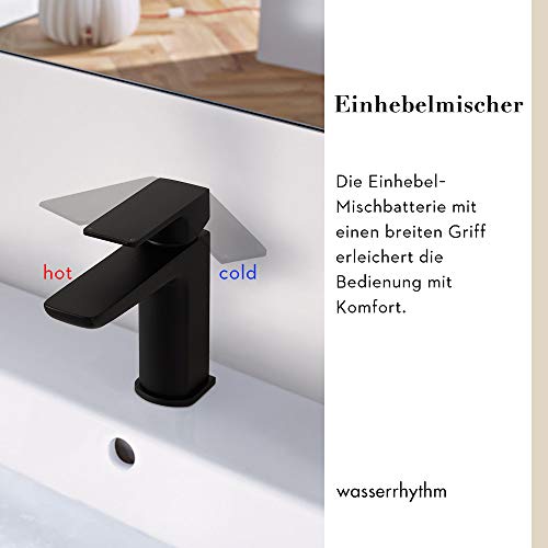 Wasserrhythm Miscelatore lavabo moderno nero in ottone, miscelatore vasca monoforo per lavabo, miscelatore lavabo monocomando alta pressione, base a forma di U di design