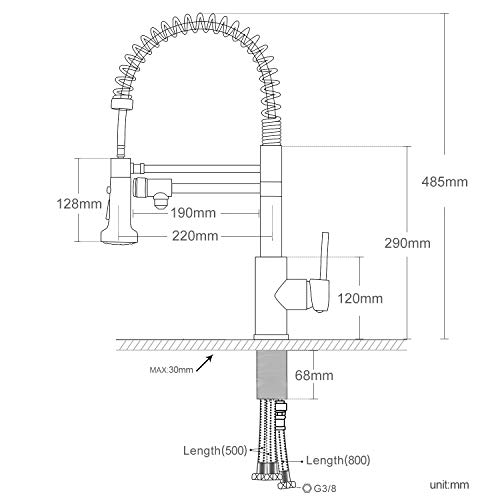 Miscelatore da cucina con molla a spirale estraibile, 2 doccette estraibili a spruzzo. Bocca alta, raggio di rotazione 360 ° - massima flessibilità. Ideale per riempire pentole di grandi dimensioni o con 2 lavandini.