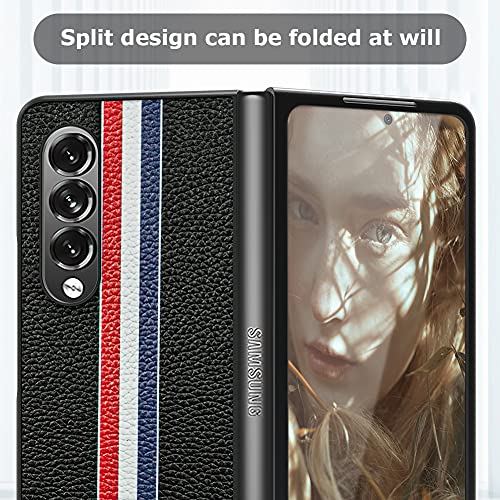 WATACHE Custodia Galaxy Z Fold 3, vera pelle + guscio rigido per PC Ultra sottile, resistente, pieghevole, all-inclusive, custodia protettiva a conchiglia per Samsung Galaxy Z Fold 3, Nero