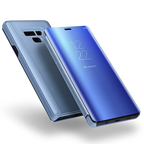 WATACHE Custodia Galaxy Note 9, Smart Clear View Specchio per Trucco Placca per placcatura Cavalletto Feature Custodia Protettiva Folio per Flip Cover per Galaxy Note 9 (Blu)