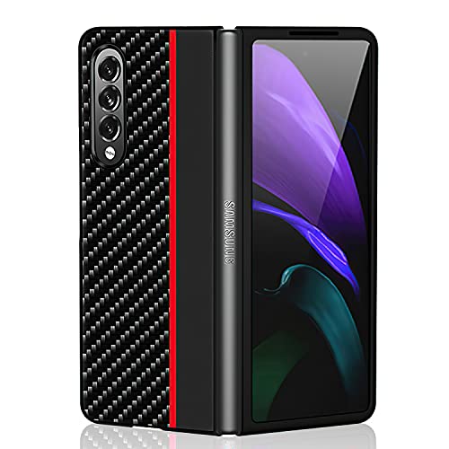 WATACHE Custodia per Galaxy Z Fold 3, Texture in Fibra di Carbonio Classica Gomma Morbida Resistente Custodia Antigraffio Slim Fit per Galaxy Z Fold 3 5G, Nero/Rosso