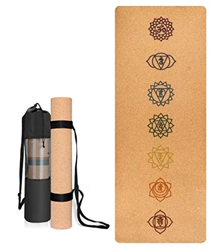 WATCBQ Cuscinetti Antisdrucciolevoli Naturali del Tappetino di Yoga del TPE del Sughero con La Linea di Posizione Adatto per Tappeti da Palestra A Casa 183X61X5Mm-Con La Linea del Corpo