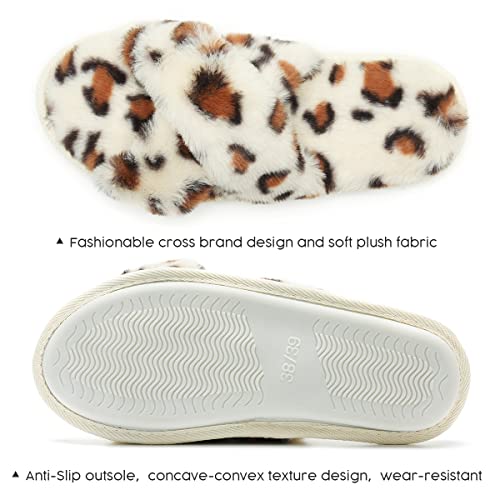 WateLves Pantofole Invernali da Uomo e da Donna morbide e comode Pantofole in Cotone Memory Pantofole Antiscivolo per la casa Indoor Outdoor(Leopardo Bianco,42 43 EU)