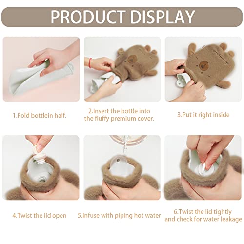 Hot Water Bottle with Cover,Gomma Caldo Bottiglia d'Acqua,Morbida Cover Peluche Bottiglia D'acqua,Borsa dell'acqua calda,Hot Water Bottle per Mano Piede Caldo (Marrone)
