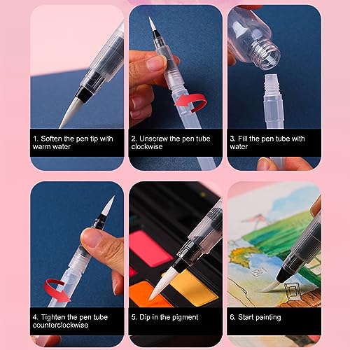 【Pennelli Acquerello con Serbatoio】 Adatto per la creazione di pittura ad acquerello, pittura ad acqua, disegni colorati, calligrafia chiamata inchiostro ecc. Le penne a pennello per l'acqua sono adatte a persone a cui piacciono l'arte, sia per bambini che artisti professionisti.