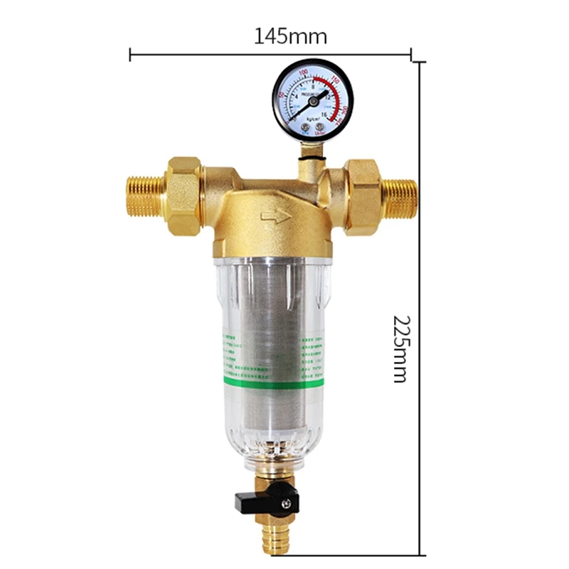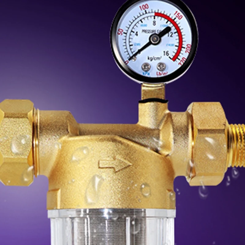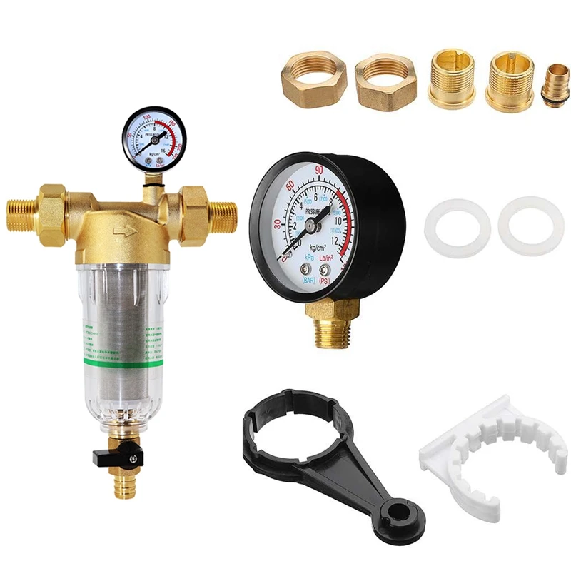 Water Pre Filter System 2/5 Inch&1 Inch Brass Mesh Prefilter Purifier W/ Reducer Adapter&Gauge