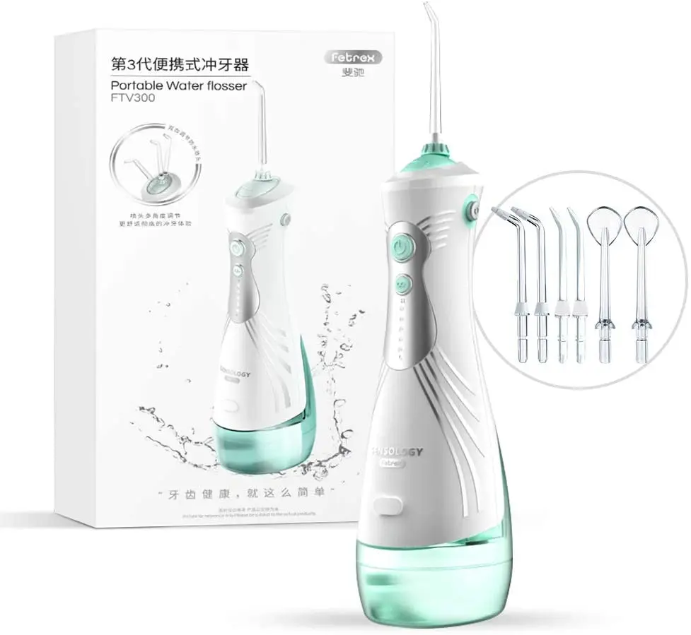 Water Flosser Cordless Dental Oral Irrigator 230ML Portable and Rechargeable IPX7 Waterproof 5 Modes (1 flosser with 6 Nozzles)