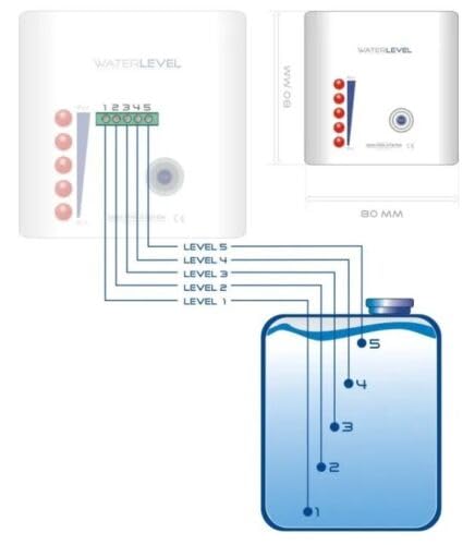 Water Level INDICATORE DI LIVELLO PER LIQUIDI ACQUA RECIPIENTI POZZO CON 5 LED