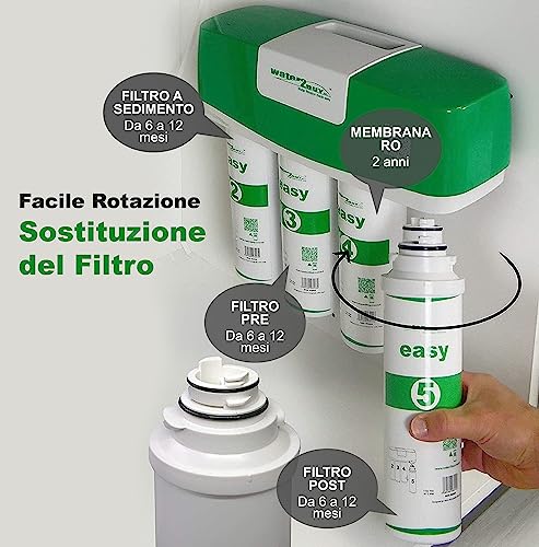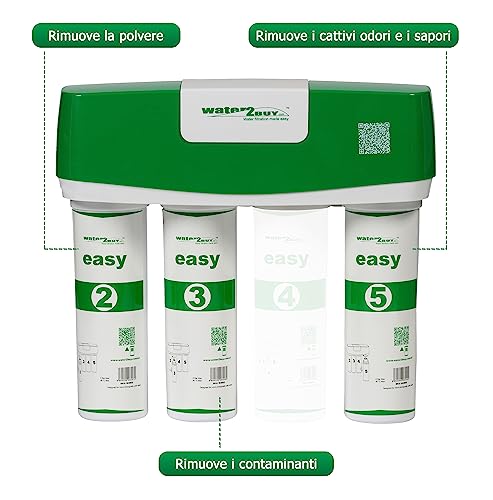 I 3 filtri di questa confezione forniscono un filtro a sedimenti, un filtro pre-carbone e un filtro post-carbon. Almeno ogni due anni ti consigliamo di scegliere il set completo di 4 filtri. Che contiene la membrana ad osmosi inversa ‘easy 4' (SKU: ERO4) Il filtro ‘easy 4' non è contenuto in questa confezione.