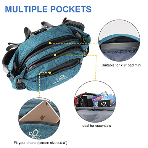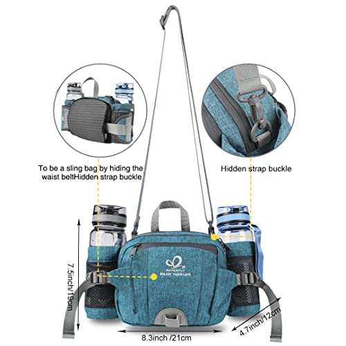 Waterfly Marsupio Trekking Impermeabile con Portabottiglia per Escursionismo, Corsa, Campeggio, Arrampicata, Viaggio e Ciclismo per Uomo e Donna (Blu Pavone)