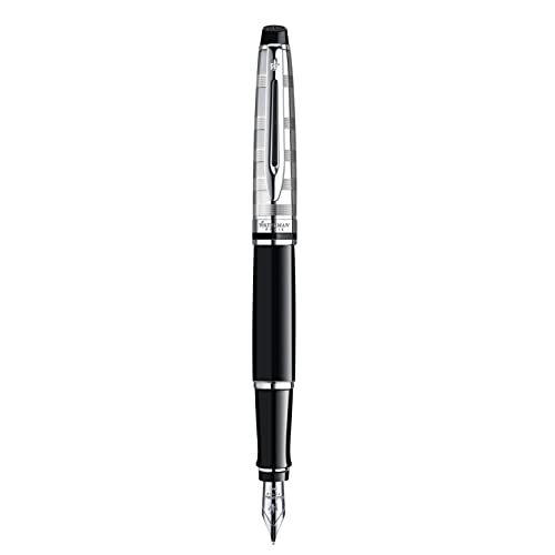 Waterman Expert 3 Penna Stilografica Deluxe Black, Finiture Cromate, Pennino Medio