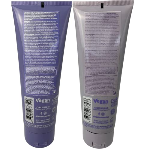 Watermans Purple Shampoo & Conditioner Set per capelli biondi, borsa per il trucco gratuita, rimuove rapidamente i toni del giallo per i capelli biondi, platino, bianchi o grigio.