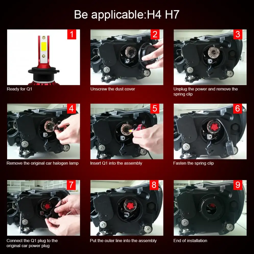 2pcs Waterproof H7 Q1 12000LM 6000K 120W COB LED Car Headlight Kit Hi or Lo Light Bulb
