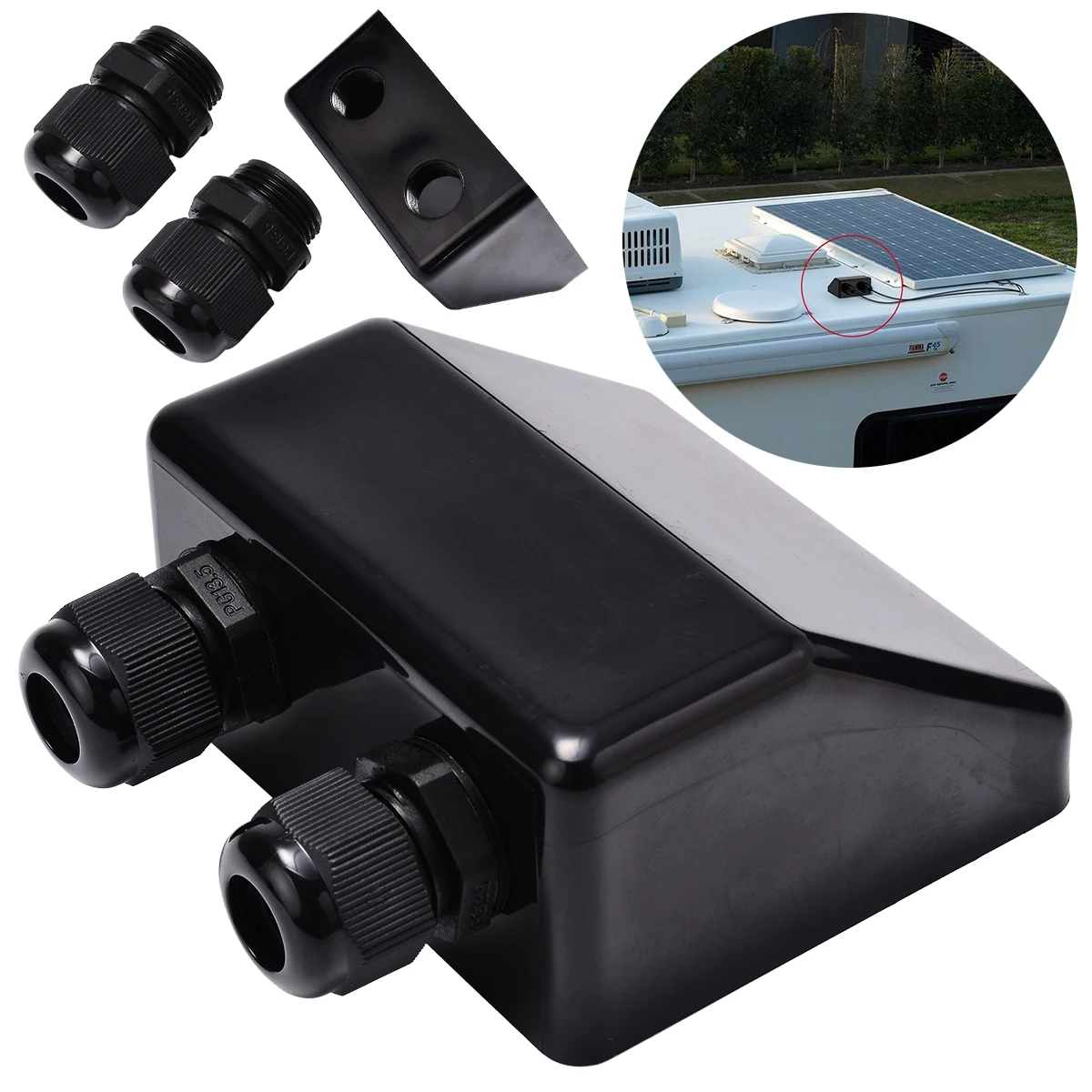 Waterproof Roof Cable Entry Gland Box Solar Panel Double Cable Gland Protection For Caravan Boat Supplies Black Mayitr
