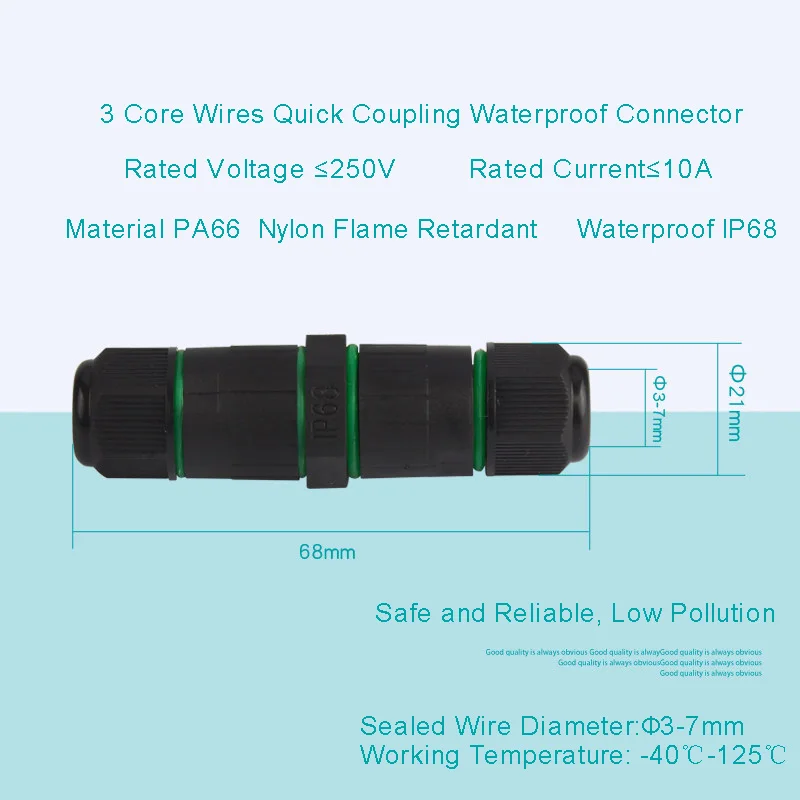 3pin IP68 Waterproof Connector for Wire IP68 Connector CA8-PG9-3P Electrical Sealed Retardant Electricos Para Cable Conectors