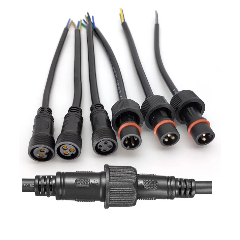 M15 Waterproof Connector Male and Female Wire 2/3/4 Pin Black Pure Copper 0.5/0.75 Square Core Cable for Lighting Lamp 20cm