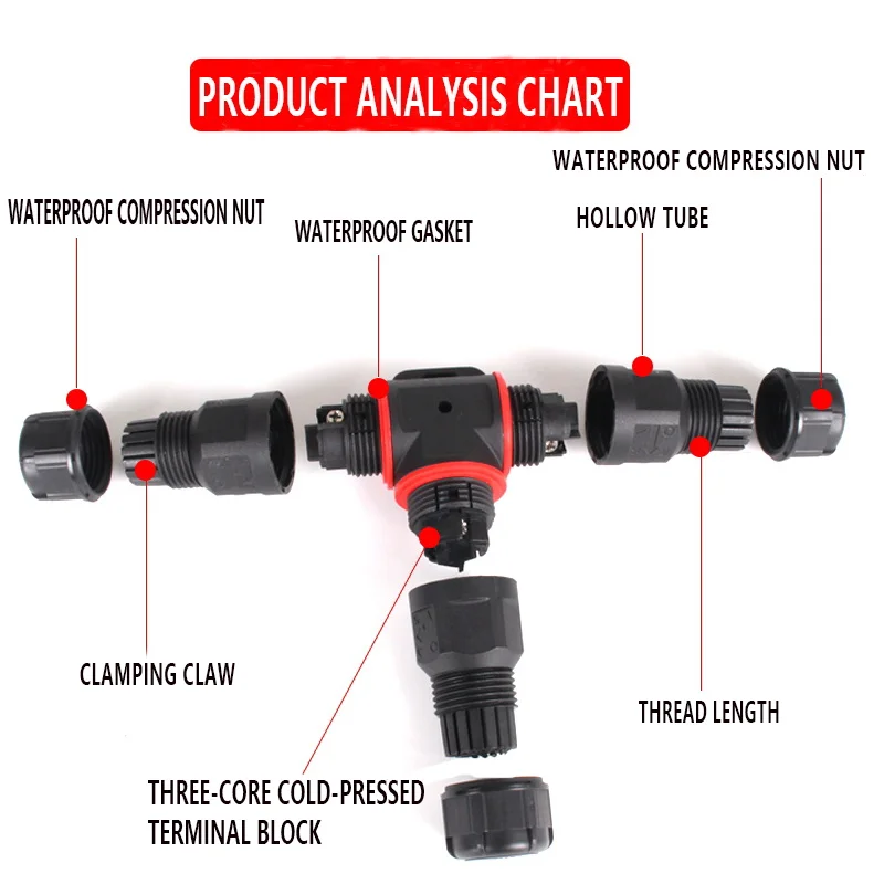 IP68 Waterproof connector T Shape 3 Pin Cable Wire Gland Sleeve connector quick connect waterproof connector