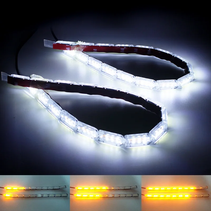 Waterproof Car Flexible White Yellow Switchback LED Daytime Running Run Fire light Sequential Strip DRL Flow Turn Signal Lights