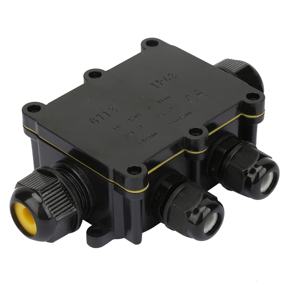 IP68 Waterproof Junction Box Electrical Enclosure Cable Connecting Terminal Block Waterproof Box Black Cable Junction Box