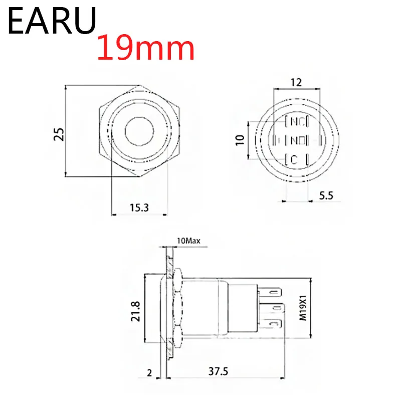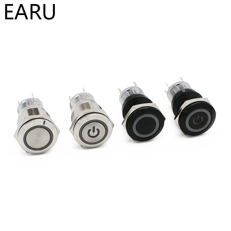 19mm Waterproof Metal Push Button Switch LED Light Black Momentary Latching Auto Car Engine PC Power Switch Red Blue Green White