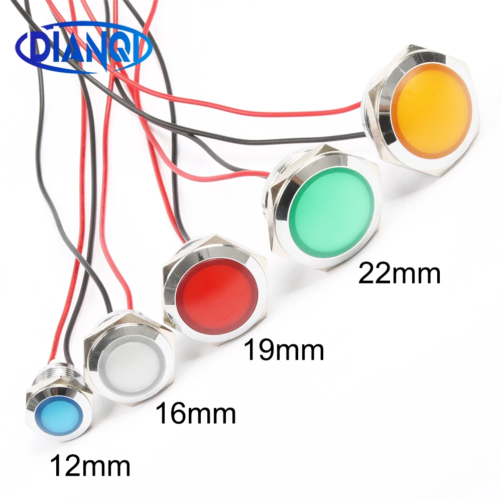 12mm 16mm 19mm 22mm Waterproof Metal Spherical Round indicator Signal lamp LIGHT with wire LED red yellow blue green white