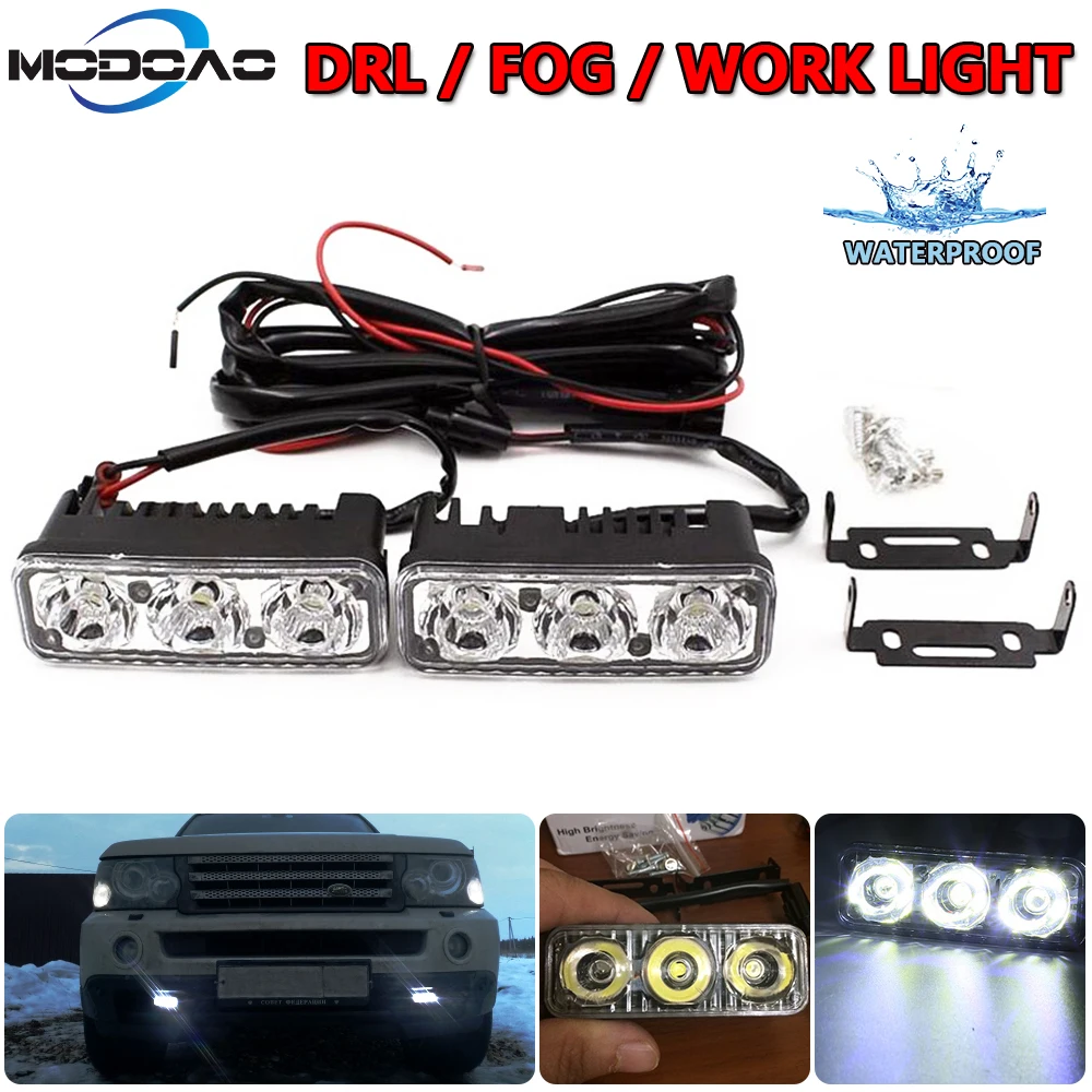 New Waterproof Car lamp High Power DRL Fog Lamps Aluminum LED Daytime Running Lights with Lens DC 12V Super White 6000K