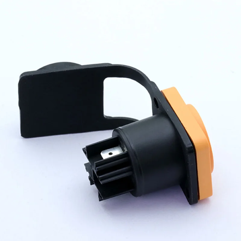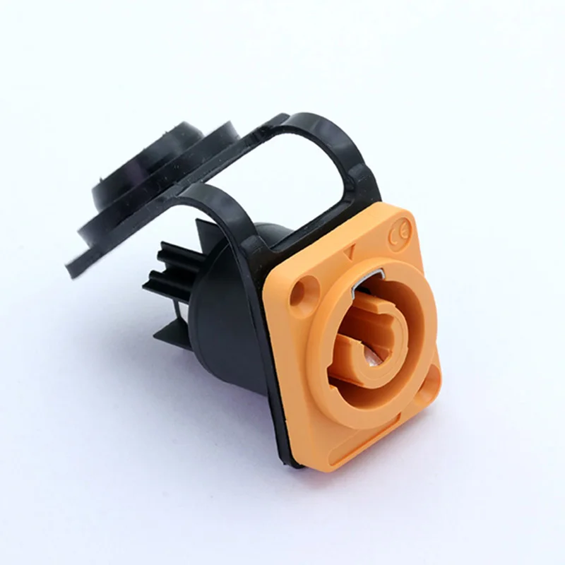 1pc Waterproof Powercon Connector NAC3MPA-1, 3 Pins 250V 20A, Female Chassis Socket Panel Mount, Orange Color