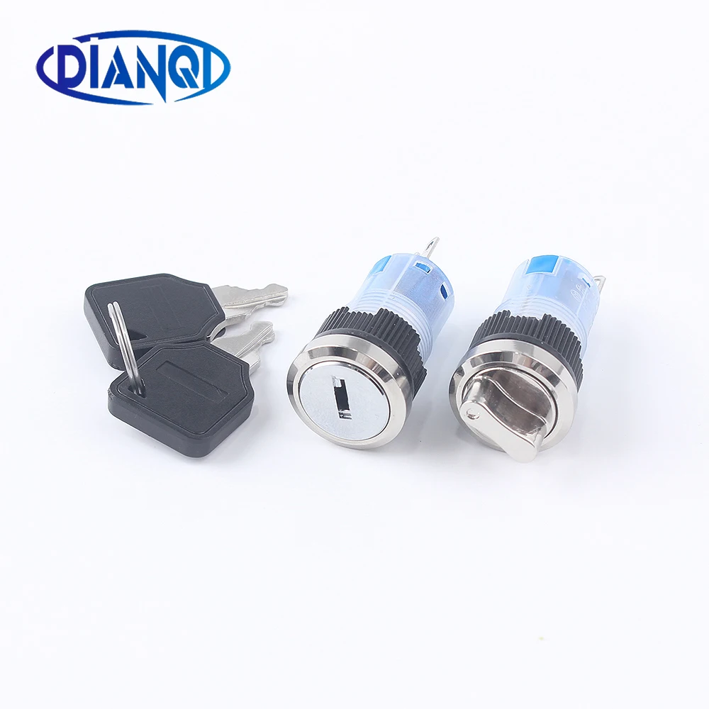 New 16mm Waterproof Rotary Switch Key Switch Latching 2 Positions Button Switches dpst knob switch latching on off