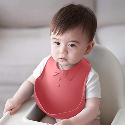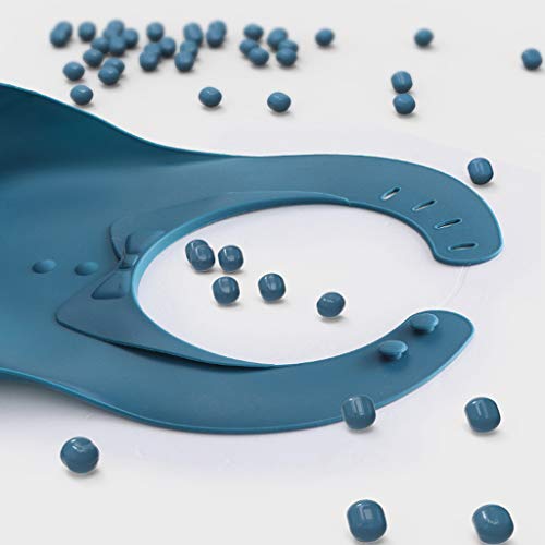 Waterproof Silicone Bib,Baby Feeding Bib Adjustable Food Crumb Catcher Pocket for Babies and Toddlers